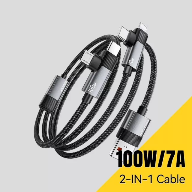 Experience lightning-fast charging and data transfer with this 2-in-1 100W Fast Charging Cable. Designed for modern lifestyles, it’s built to keep your devices powered up and your connections seamless. Whether you’re charging your iPhone 16 Pro, Samsung phone, or laptop, this multi-function cable delivers outstanding performance and reliability. Crafted with durable braided material, it combines strength, flexibility, and style for everyday use.