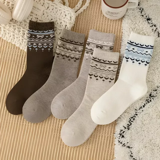 2 Pairs Women’s Retro Harajuku Wool Socks – Soft Warm Floral Knit Winter Comfort