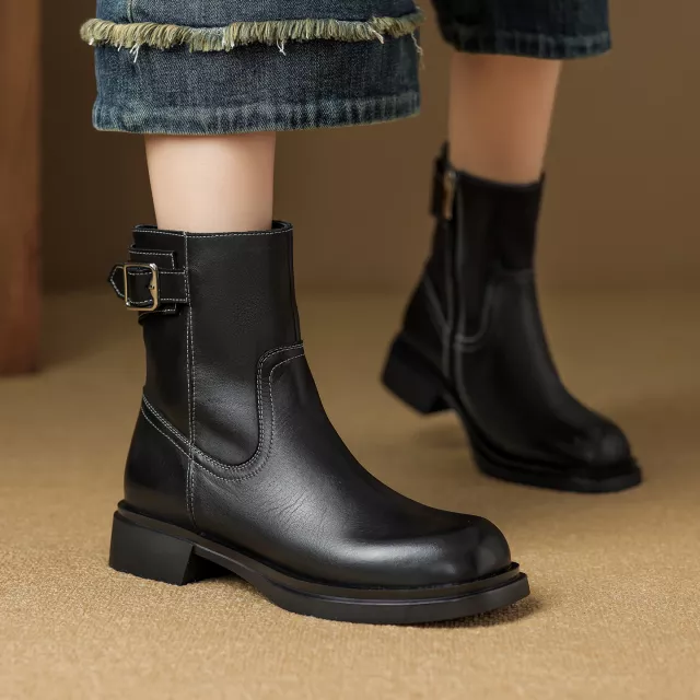 These ankle boots are made to keep you warm and stylish throughout chilly seasons. The soft short plush lining and insole provide cozy comfort and gentle insulation without bulk. Featuring a medium square heel (about 1.4 inches), these boots offer just the right height for everyday wear while ensuring stability and support. The convenient side zip closure allows for easy slip-on access, making them perfect for women always on the go.