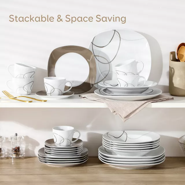 Bring timeless beauty and everyday practicality to your table with this stunning 30-Piece Porcelain Dinnerware Set. Crafted from high-quality porcelain and finished in a smooth ivory white with delicate brown lines, this set combines durability, elegance, and simplicity in one. Perfect for both casual family meals and formal gatherings, it’s designed to turn every dining moment into something special.