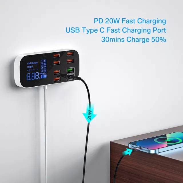 With its powerful 40W total output and intelligent charging technology, this USB charging station is the ultimate power hub for your digital lifestyle. Keep your devices charged, your space clutter-free, and your day running smoothly. Bring home this 8 Port USB Charging Station today — and experience effortless, organized charging every day.