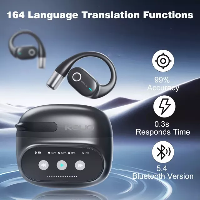 Enjoy crystal-clear sound with active noise cancellation and dynamic drivers that deliver rich audio quality for both translation and entertainment. The ergonomic ear-hook design ensures a comfortable and secure fit, perfect for long listening sessions or high-energy days. With a wireless range of up to 33 feet and a Bluetooth 5.4 connection, you can move freely without losing clarity.
