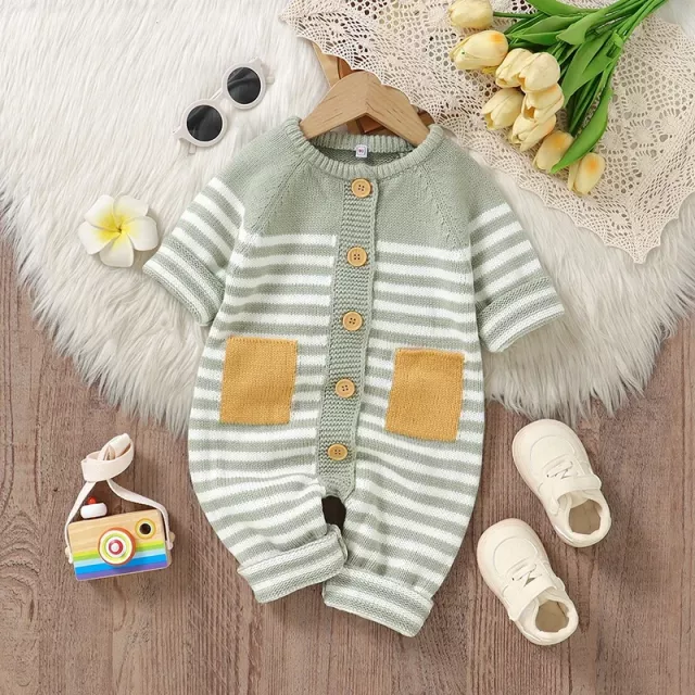 Cozy Knitted Baby Romper – Long Sleeve Striped Jumpsuit for Winter (0-18M)