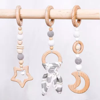 Wooden Baby Play Gym with Bunny Ear Rattle Toys – Nordic Nursery Decor & Infant Gift