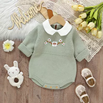 Floral Knit Baby Bodysuit Long Sleeve Jumpsuit for Newborns & Toddlers