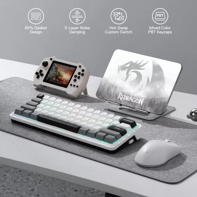 Engineered with 61 essential keys, this compact layout maximizes desk space for full mouse movement—ideal for FPS players who need precision and agility. Designed for both Windows and Mac users, it offers instant compatibility and quick switching between systems with a side slide control. Whether you’re editing, coding, or gaming late into the night, the vibrant RGB backlighting brings your setup to life with dynamic color effects.